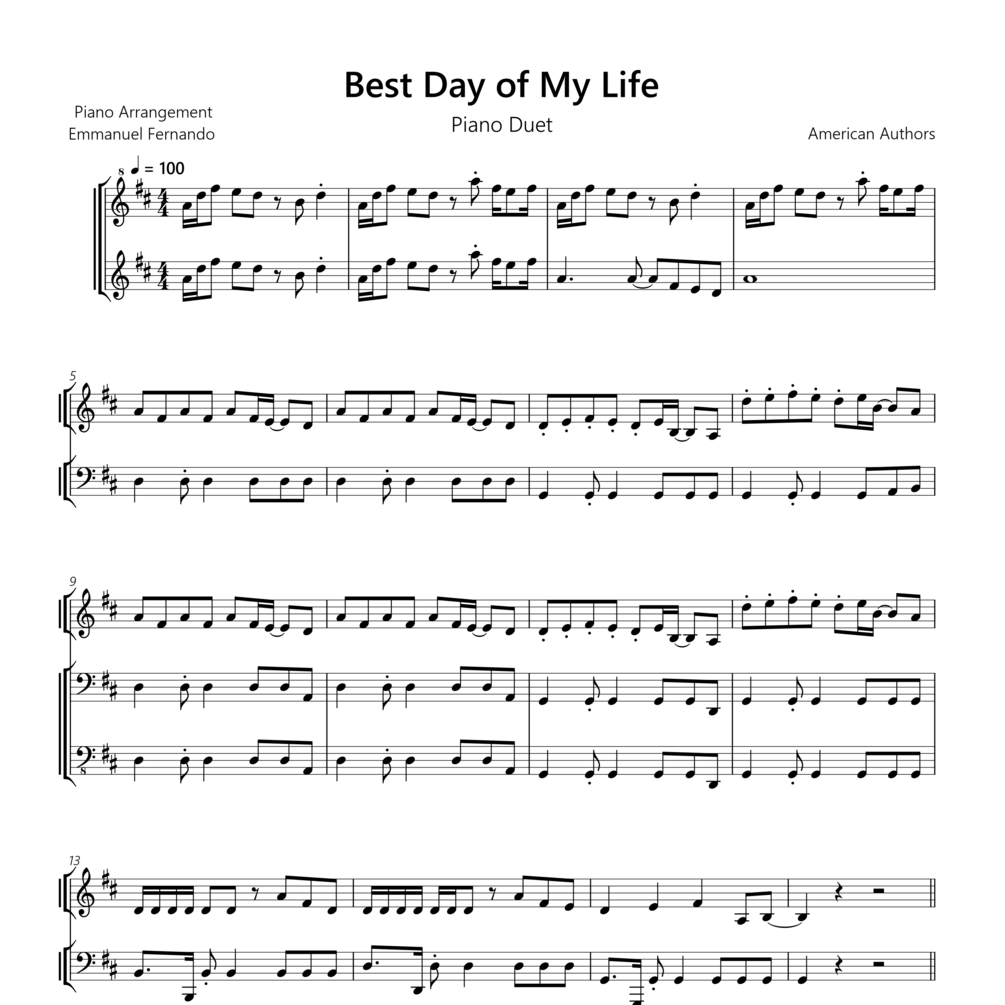 Best Day of My Life | American Authors (Piano Duet)$5.99$5.99https://schema.org/InStockusdEmmanuel FernandoEmmanuel FernandoQuantityAdd to cartSize115 KBLength5 pagesAdd to wishlist New wishlistShareShare on XShare on Facebook Copy linkCopy product URL