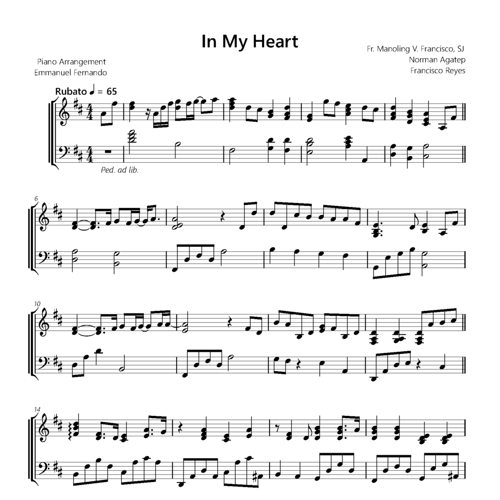 In My Heart | Bukas Palad$2.99$2.99https://schema.org/InStockusdEmmanuel FernandoEmmanuel FernandoQuantityAdd to cartSize83.9 KBLength3 pagesAdd to wishlist New wishlistShareShare on XShare on Facebook Copy linkCopy product URL